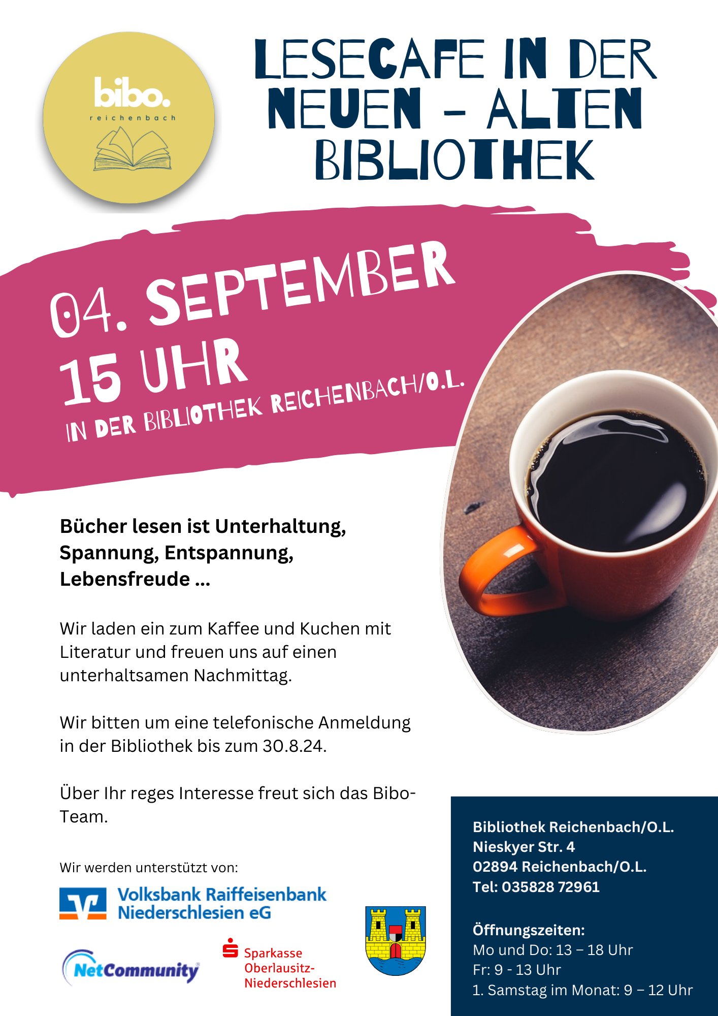Am 15.11.2023 hat sich der gemeinnützige Verein Bibo Reichenbach e.V. gegründet , um den Fortbestand der Bibliothek für unsere Stadt und ihre Region zu garantieren. In kürzester Zeit und mit viel ehrenamtlichen Engagement hat der jetzige Vorstand ein tragfähiges Konzept erarbeitet.